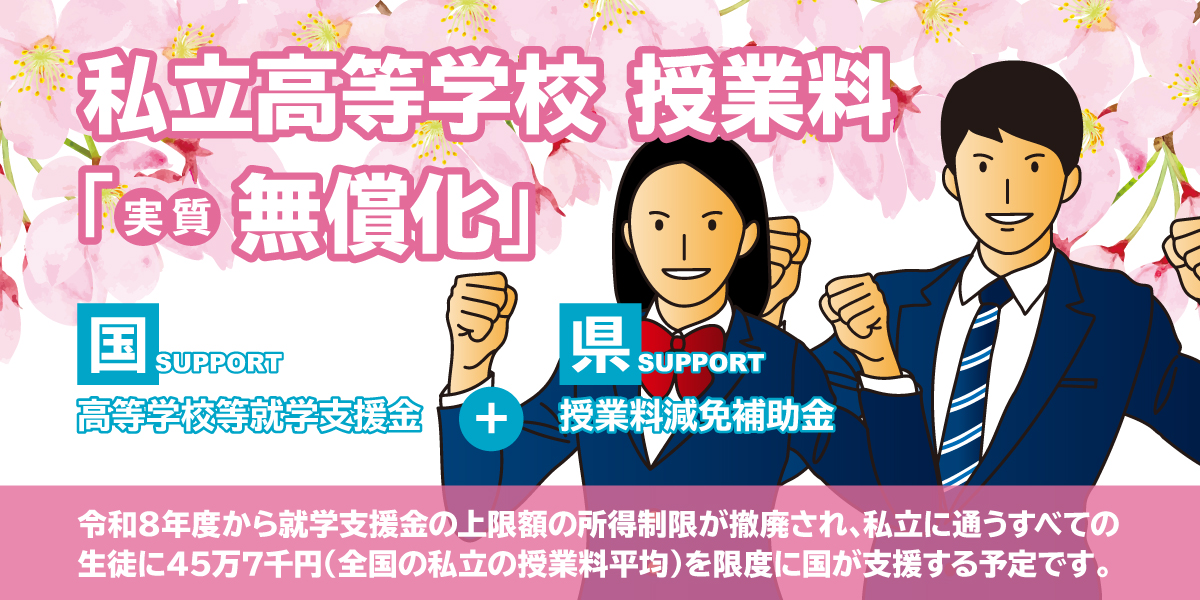 全ての意志ある高校生が安心して勉学に打ち込める社会をつくるため、授業料に充てる高等学校等就学支援金を生徒に支給し、家庭の教育費負担を国が支援する制度です。社会全体の負担により、学びが支えられていることを自覚し、将来、社会の担い手として広く活躍されることが期待されています。 ※貸与型の奨学金ではありませんので、返済は不要です。